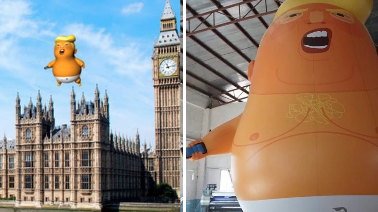 시위대가 공개한 풍선은 6m의 거대한 크기에 기저귀를 차고 있으며, 한 손에는 아이폰을 들게 함으로써 트럼프 미국 대통령의 '트위터 사랑'을 비꼬고 있다. 사디크 칸 런던시장은 평화적으로 시위할