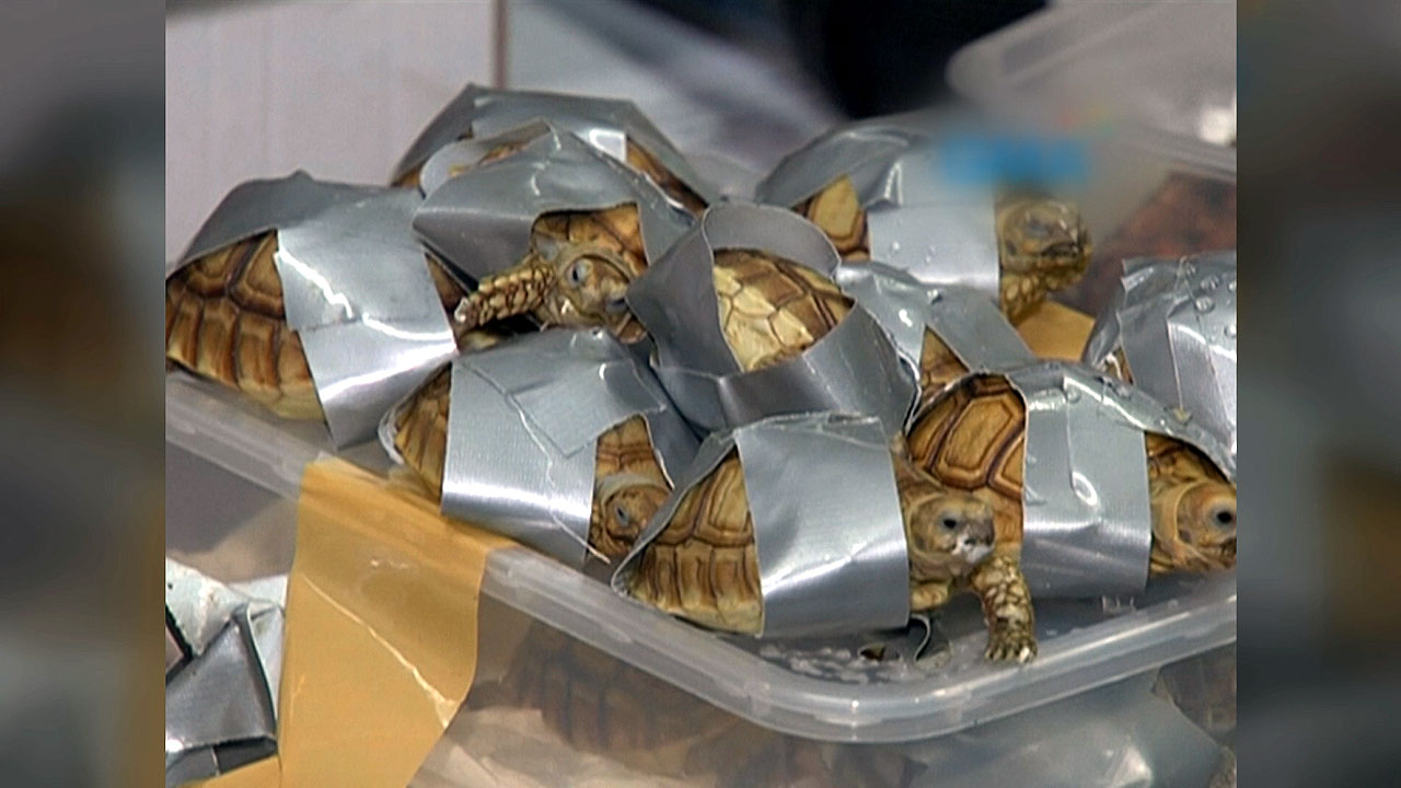 이 가방에는 성인 남성 주먹 크기보다 작은 살아있는 거북들이 들어있었고, 이 가운데 멸종 위기 동식물 목록에 '취약' 상태로 분류한 아프리카 가시 거북과 붉은귀거북도 포함됐습니다.
