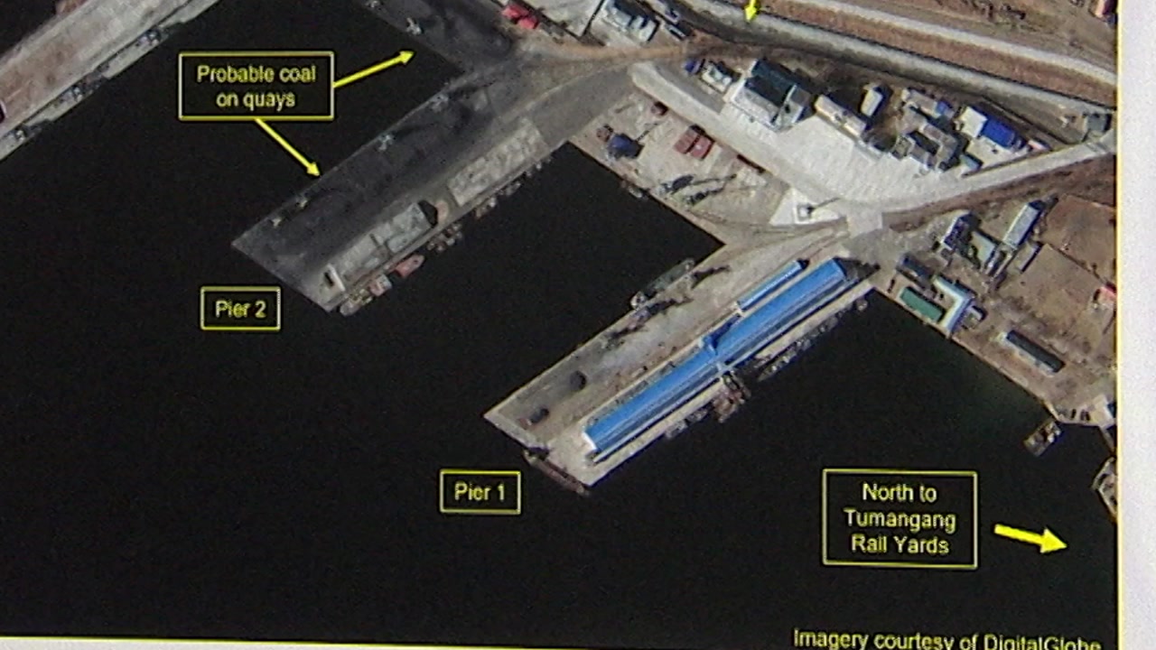 나진항도 지난 2월 8일 위성사진에서 2번 부두 주변에 많은 양의 석탄이 쌓인 것으로 나타났다며 중국과 러시아가 북한산 석탄을 자국산으로 세탁해 수출해왔다는 점을 들어 나진항 석탄도 이런 과정을 밟고 있는 것으로 추정했습니다.