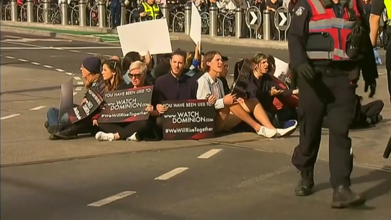 멜버른 경찰은 쇠사슬 시위에 참여한 38명을 체포했다고 밝혔습니다.