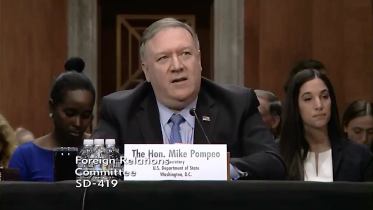 이틀째 상원 청문회에 출석한 폼페이오 미 국무장관.