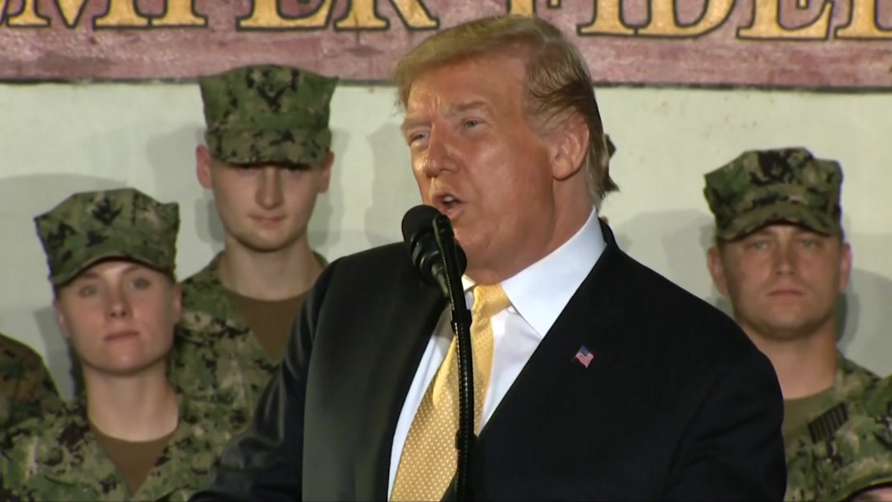 트럼프 대통령은 오늘(28일) 요코스카에 있는 미 해군기지를 방문해 주일미군을 상대로 한 연설 도중 미국 제7함대의 노고를 치하했습니다.