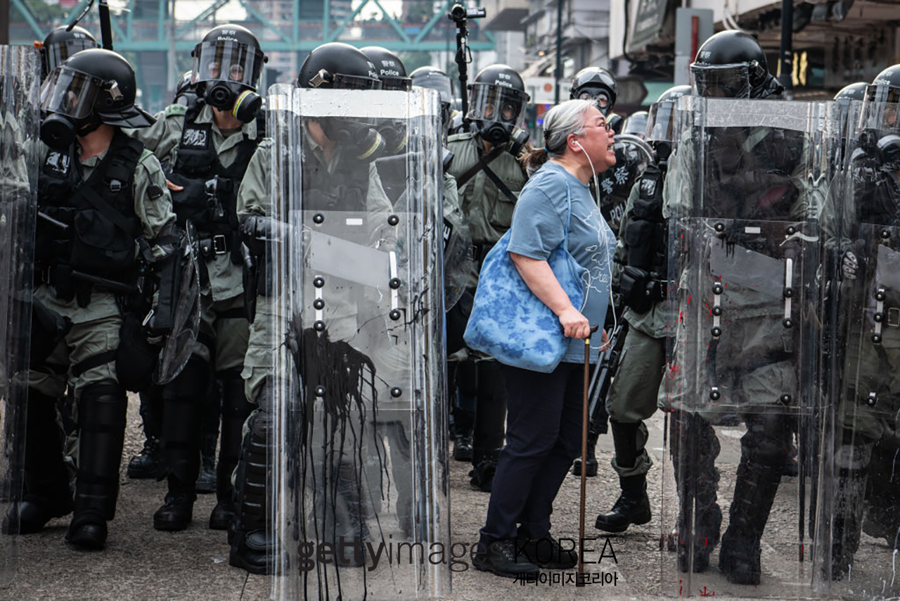 홍콩 경찰이 시위대를 향해 최루탄과 고무탄 등을 발사하면서 시위대 강경 진압에 나선 가운데, 한 백발노인이 경찰에게 항의하는 모습이 사진에 담겼다.