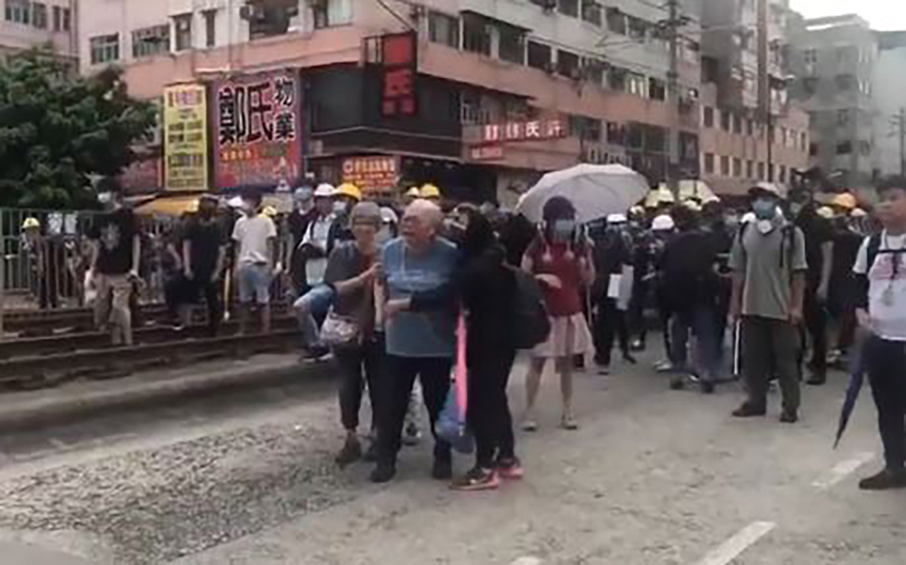 조슈아 왕은 "이 노인이 위안랑 지역 폴리스 라인 앞 시위대 앞에 섰다"라며 "그는 울면서 경찰들을 향해 '어린아이들에게 최루탄을 쏘지 말라'라고 외쳤다"라고 전했다.