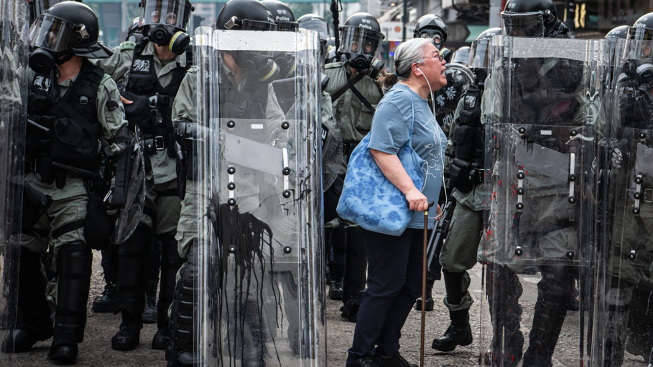 프리랜서 기자 로렐 초르(Laurel Chor)가 찍은 사진 속 홍콩의 백발노인은 경찰에게 다가가 소리치고 있다. 로렐 초르는 자신의 트위터를 통해 "그는 매우 화가 나 있었고 용감했다"라고 사진에 관해 설명했다.