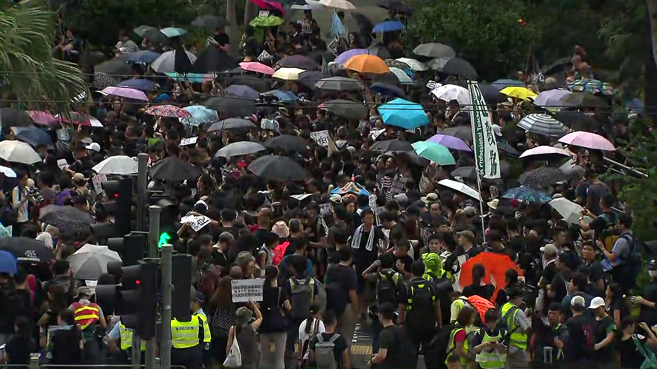 어제 늦은 밤까지 '송환법 반대'를 외치며 집회를 이어간 홍콩에서는 오늘도 곳곳에서 시위가 이어집니다.