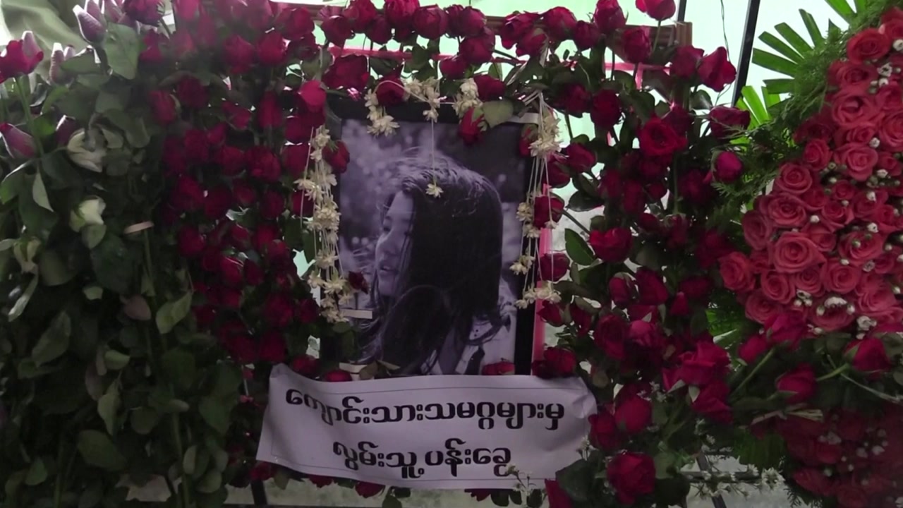일요일, 수도인 네피도에서는 머리에 총을 맞고 지난 19일 숨진 20살 여성 카인의 장례식이 엄수됐습니다.