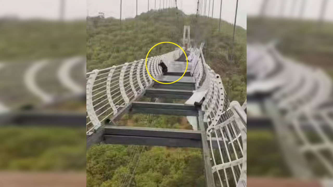 중국 룽징시 비암산에 있는 '투명다리' 바닥재가 강풍에 날아가 관광객 1명이 한때 고립되는 아찔한 사고가 발생했다.