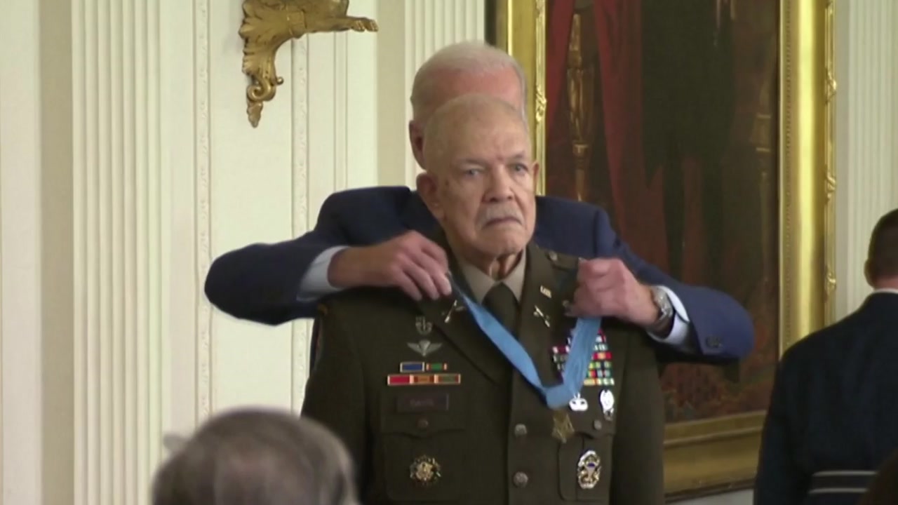 조 바이든 미국 대통령은 백악관에서 퇴역한 패리스 데이비스 중령에게 국가 최고 훈장인 명예훈장을 직접 수여했습니다.