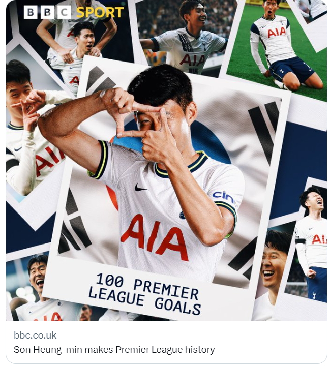 프리미어리그 100골 클럽 가입, 여기에 이전 시즌 프리미어리그 득점왕까지. 손흥민 선수가 가는 길은 아시아 축구의 역사가 되고 있습니다. 실제로 BBC는 "손흥민은 아마 아시아 축구 최초의 글로벌 슈퍼스타라고 할 수 있다. 이제 그는 프리미어리그에서 100골을 처음으로 넣은 아시아 선수가 되었다. 이것은 역사책에 기록될 여정이다"라고 평가했습니다.