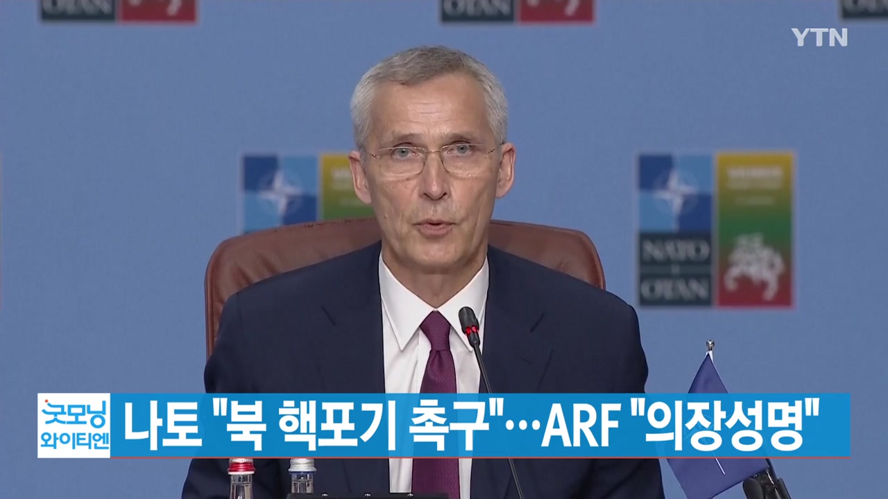 ■ 나토는 북한이 완전하고 검증 가능하며 불가역적인 비핵화에 나서야 한다고 다시 촉구했습니다. 내일부터 열리는 아세안 관련 외교장관회의, ARF에서는 북한의 전례 없는 도발과 관련한 내용을 의장성명에 포함하는 방안을 추진하고 있습니다.
