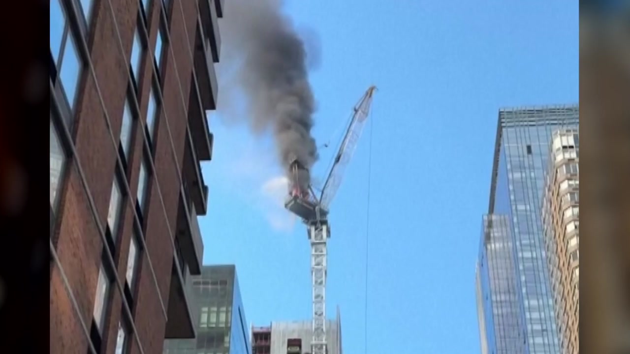 뉴욕 소방당국은 크레인 운전자가 16톤가량의 콘크리트를 들어 올리던 중 엔진 부근에서 불꽃이 폭발하는 것을 목격했다며 엔진에서 불이 난 것으로 보인다고 밝혔습니다.