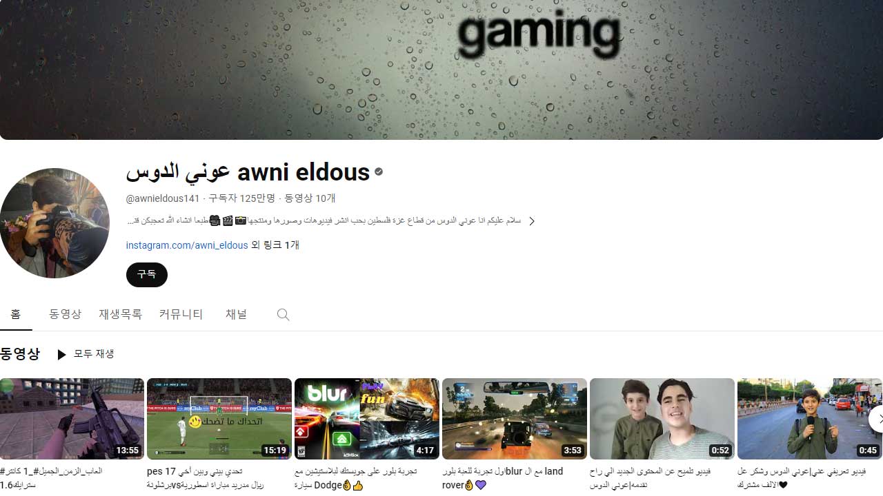 지난 6일(이하 현지 시각) 카타르 방송 알자지라 보도에 따르면, 평소 온라인게임을 좋아했던 팔레스타인의 13세 소년 아우니 엘도스는 생전 유튜브에 게임 관련 영상을 올리며 구독자들과 소통해 왔다.