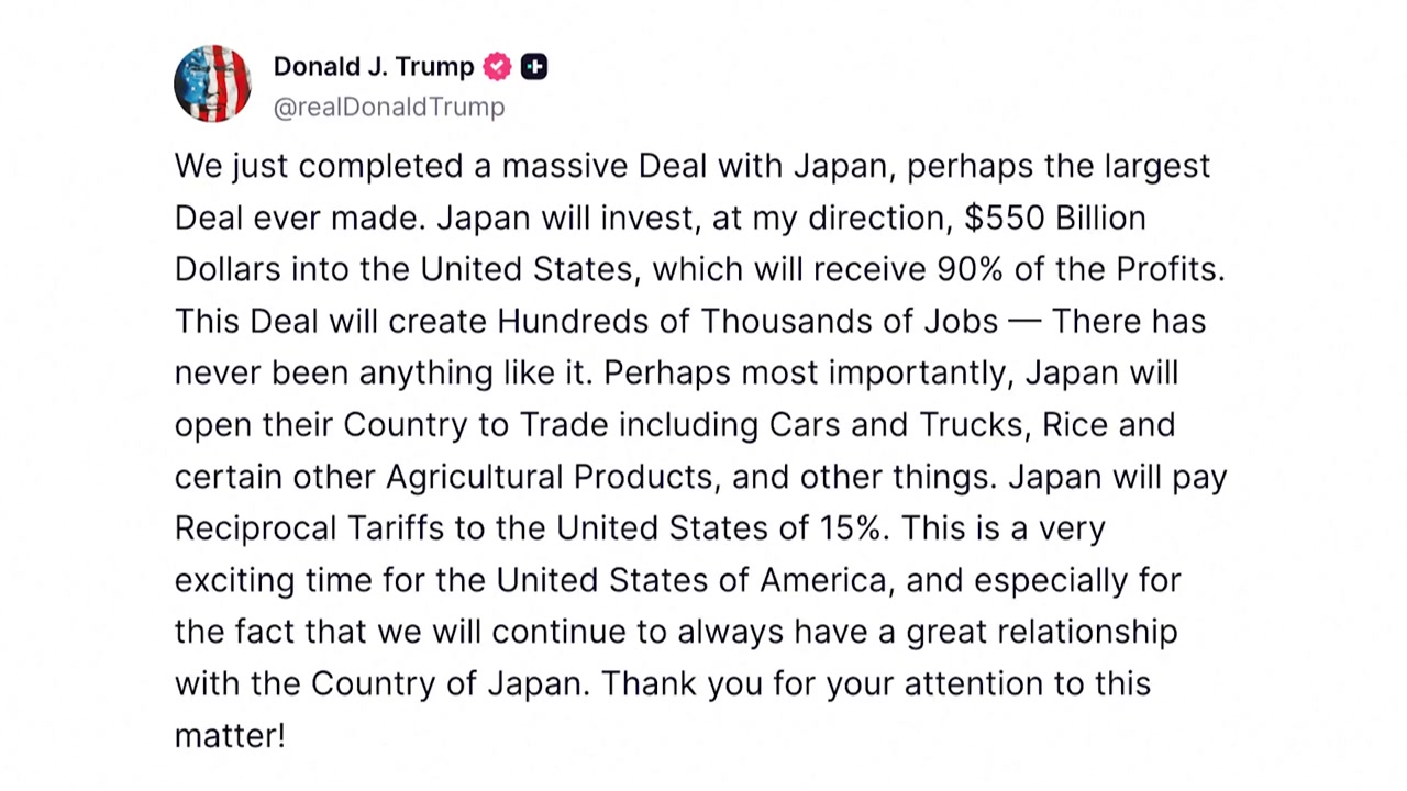 이시바 시게루 일본 총리도 "트럼프 대통령과 합의에 이르렀다"며 미국이 일본에 대한 상호관세와 자동차 관세를 모두 15%로 인하하기로 했다고 발표했습니다.