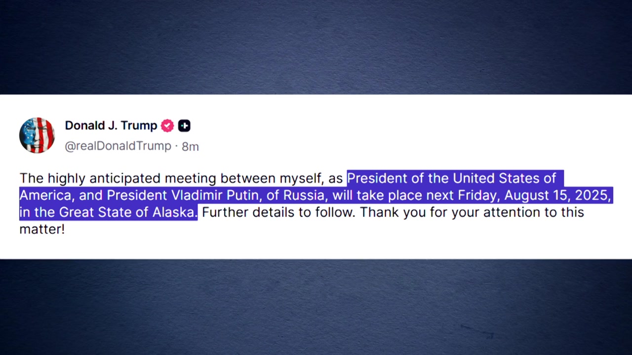 트럼프 대통령은 SNS에 "큰 기대를 모으고 있는 미국과 러시아의 정상회담이 다음 주 금요일인 8월 15일 위대한 알래스카주에서 열릴 것"이라고 밝혔습니다.