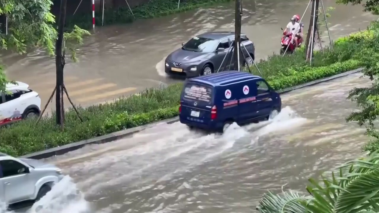 수도 하노이에도 폭우가 쏟아져 가옥 만여 채가 침수 피해를 입었고 도로 곳곳이 물에 잠겼습니다.