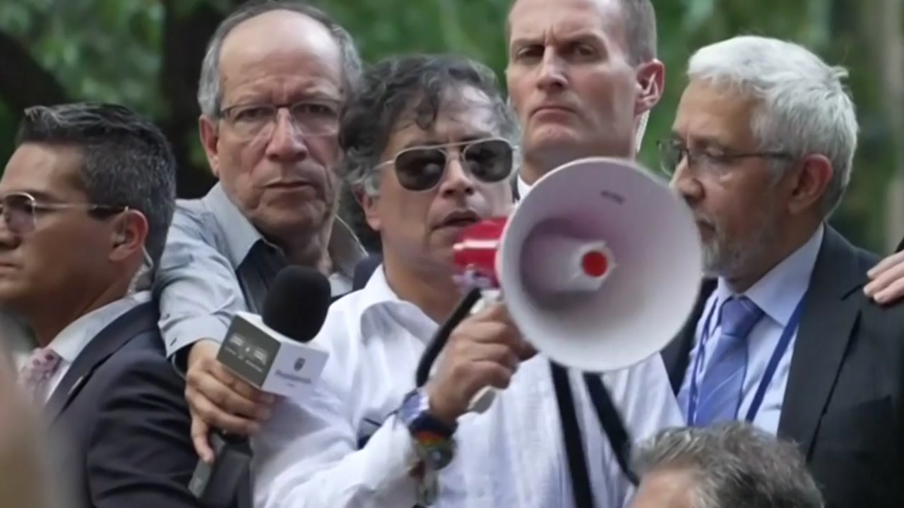페트로 대통령 발언은 팔레스타인 사태에 대한 미국과 이스라엘의 입장을 규탄하는 시위에 참석한 자리에서 나왔습니다.