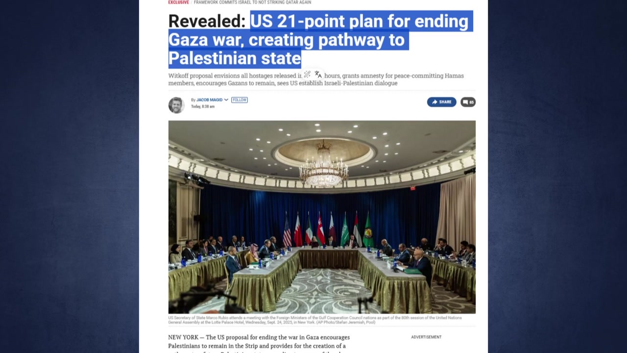 현지 시간 27일 일간 타임스오브이스라엘은 트럼프 대통령이 카타르, 요르단, 튀르키예, 파키스탄, 이집트, 아랍에미리트 등 지도자와 만나 제안한 21개 항을 입수했다며 이같이 보도했습니다.