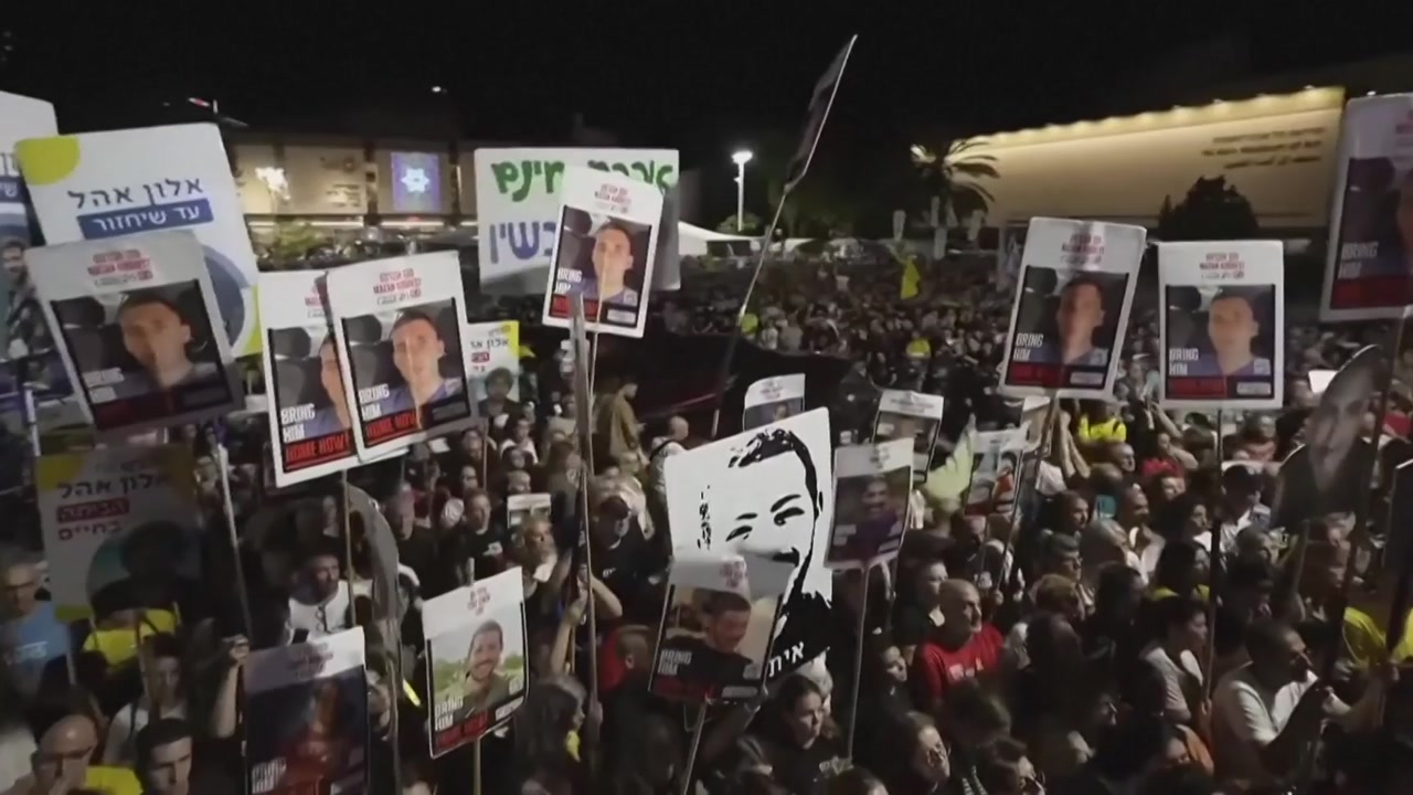 시위 참가자들은 히브리어로 "아크샤브" 즉 "지금!"을 외치며 하마스에 납치된 인질 모두를 지금 석방하라고 요구했습니다.