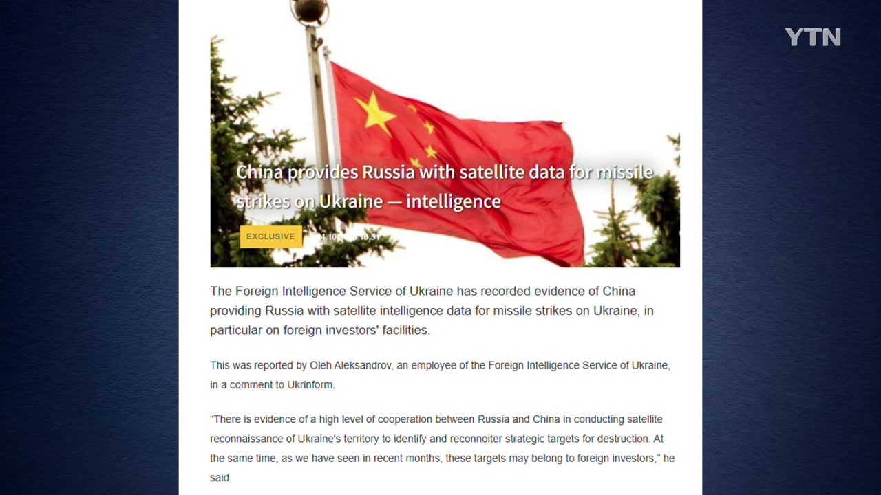 중국이 위성 정보를 활용해 러시아에 우크라이나 내 표적 정보를 제공했다고 우크라이나가 주장했습니다.