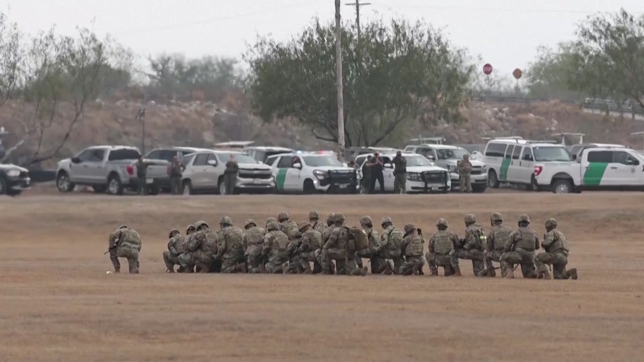 시카고 외곽에 있는 육군 시설에 텍사스주 방위군이 도착했습니다.