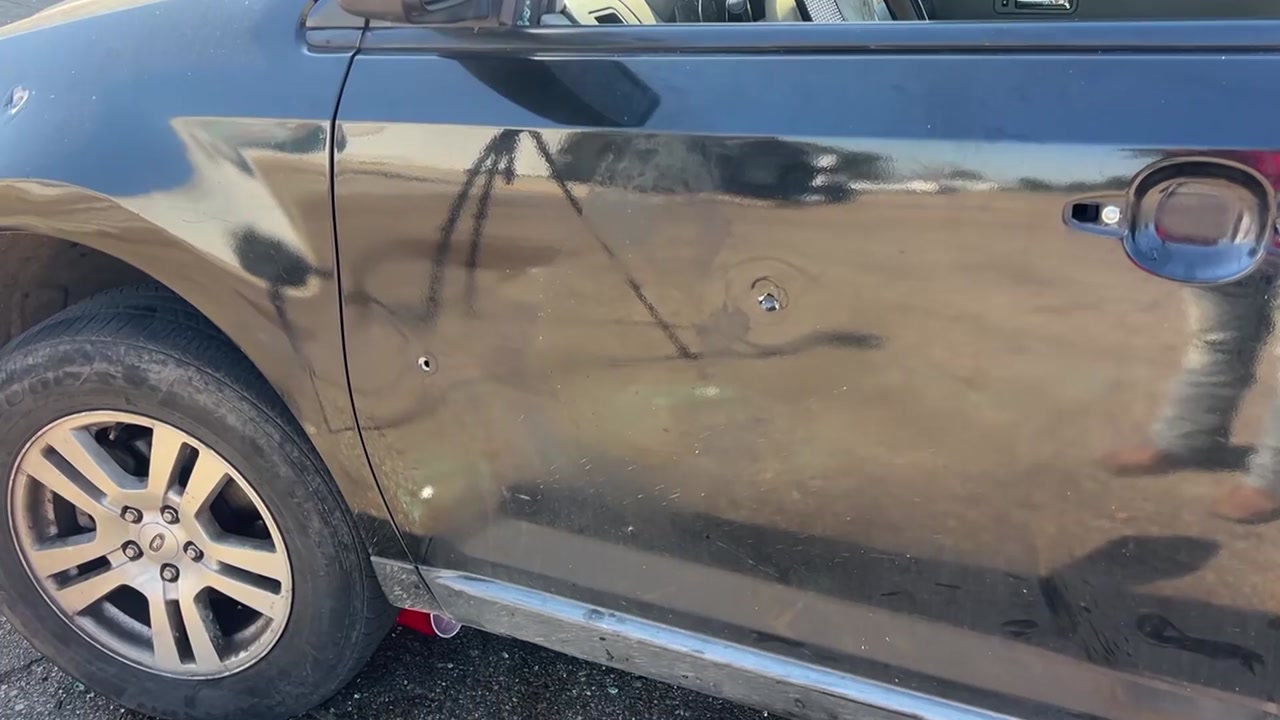 도로에 벗겨진 신발이 한 짝씩 나뒹굴고, 벽과 주차된 차량 곳곳에는 총알 자국이 남아 있습니다.