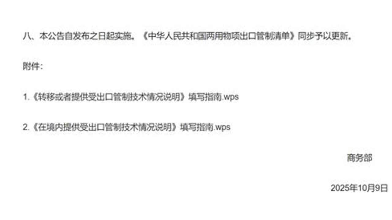 중국 재련사에 따르면 중국 상무부는 지난 9일 희토류와 관련 기술 등 사실상 미국을 겨냥한 전략 물자 수출 통제 조치를 잇따라 발표하면서 처음으로 첨부 파일을 WPS 형식으로 게시했습니다.