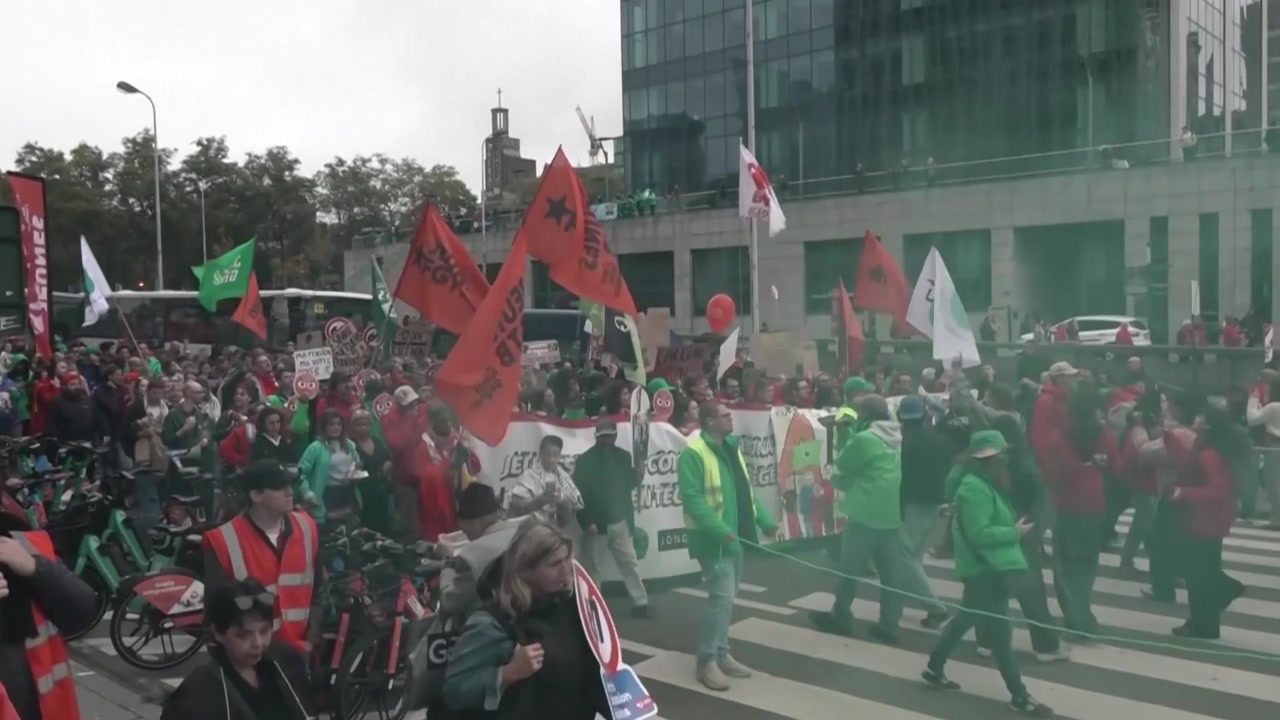현지 시간 14일 수도 브뤼셀 북역과 남역 사이에서 열린 집회에는 경찰 추산 약 8만 명이 참가해 '65살에 연금 받을 권리' 등의 문구를 적은 팻말을 들고 정부의 정년 연장 방안을 규탄했습니다.