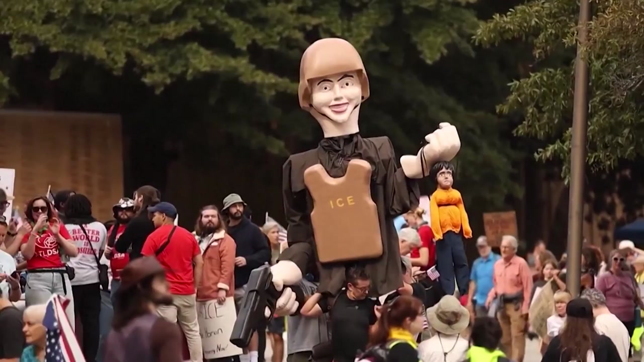 참가자들은 거리행진을 하면서 '노 킹스', '미국에 왕은 필요 없다'라고 쓴 팻말을 들었습니다.