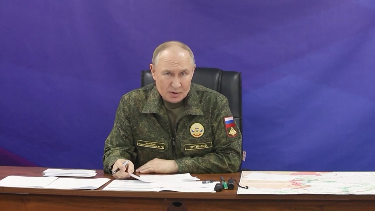 블라디미르 푸틴 대통령이 군복 차림으로 러시아군 전투사령부를 찾았습니다.
