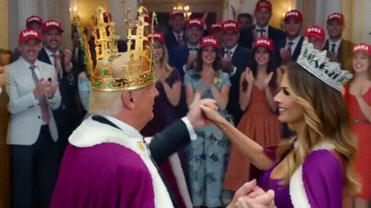 31일 엑스(X·옛 트위터) 등 소셜미디어(SNS)에서는 트럼프 대통령이 금관을 쓰고 멜라니아 여사와 춤을 추는 AI 영상이 확산 중이다.