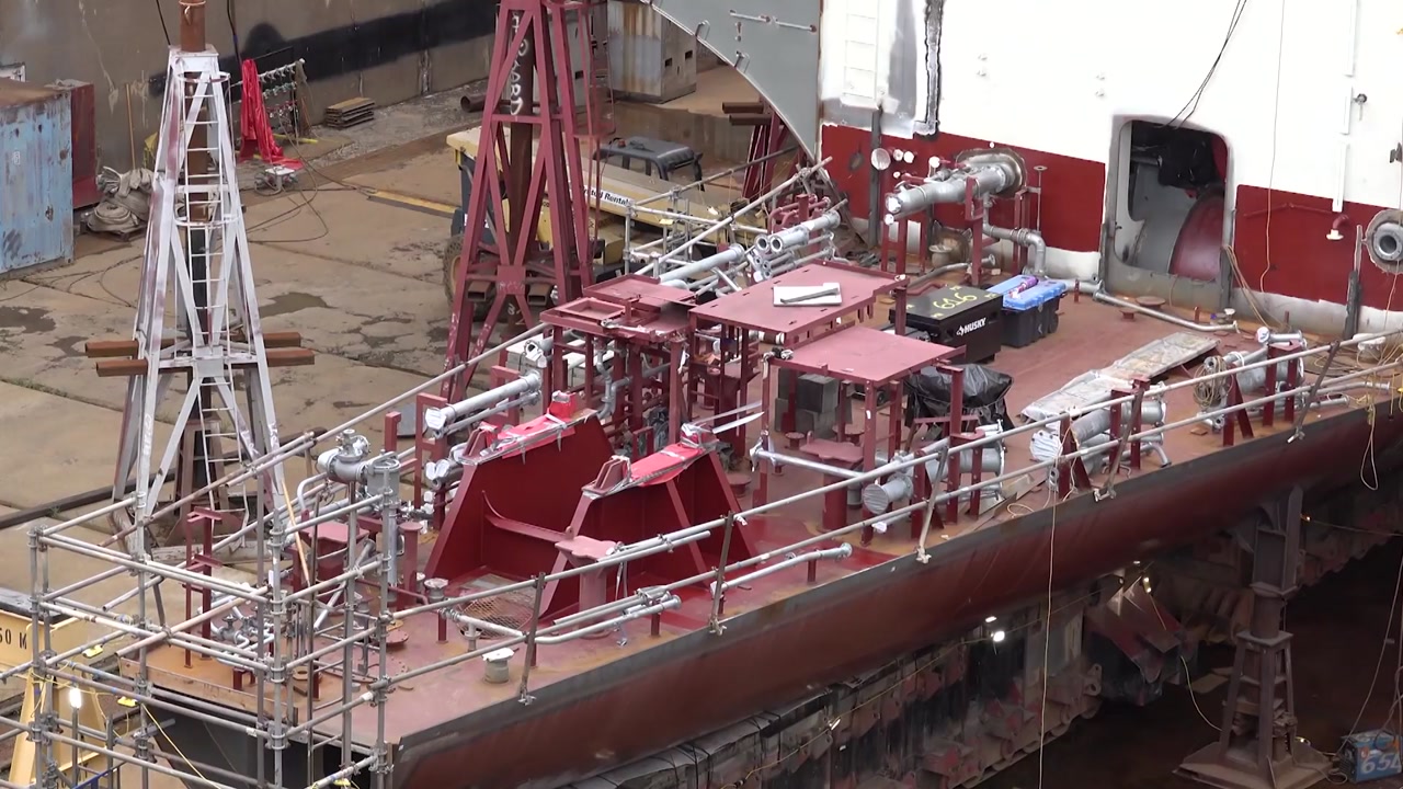[중국 관영 CCTV / 상무부 대변인 발언 보도 : 한화오션의 미국 자회사들은 미국 정부의 중국 해사·물류·조선업에 대한 301조 조사와 조치 착수를 지지했습니다.]