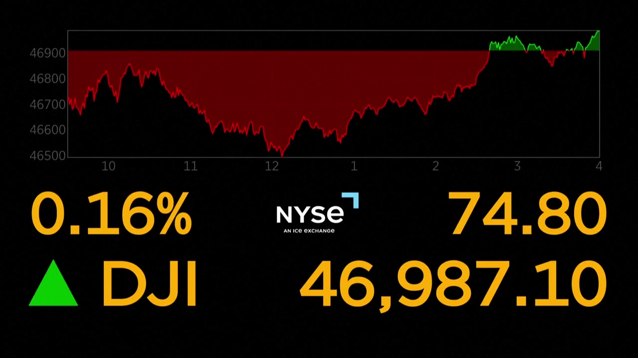 뉴욕 증권 거래소에서 우량주 위주의 다우존스 30 산업평균지수는 전장보다 0.16% 오른 46,987.10에 거래를 마감했습니다.