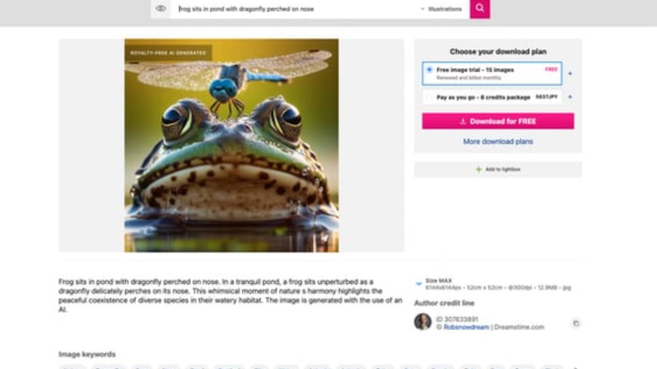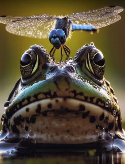 이 작품은 개구리의 머리 위에 잠자리가 앉은 순간을 포착한 사진으로 "피사체의 재미 뿐만이 아니라, 촬영 기술과 구성의 교묘함으로 이상한 매력과 친밀감을 겸비한 작품"이라는 호평과 함께 최우수상 작으로 선정됐다. 그러나 작품이 공개된 뒤 SNS상에 'AI 사진 같다'는 의혹과 함께 '해외 스톡 포토 사이트에 똑같은 사진이 있다'는 등의 제보가 이어졌다.