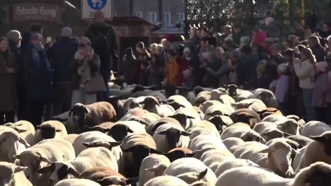 현지 시각으로 어제(16일) 독일 뉘른베르크 시내에서 약 600여 마리의 양들이 임무를 마치고 겨울 방목지로 돌아가는 모습입니다.