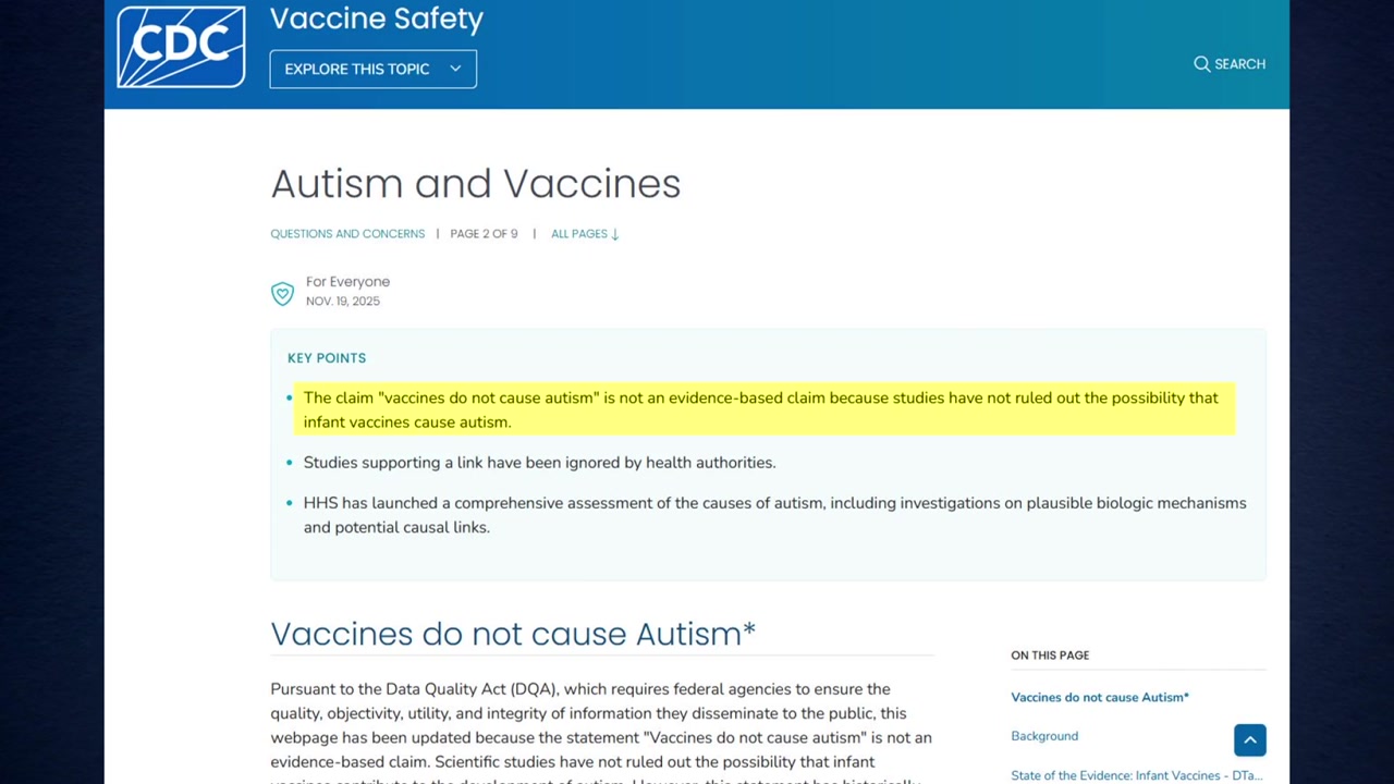미국 질병통제예방센터, CDC가 '백신은 자폐증을 유발하지 않는다'는 기존 문구에 '증거에 기반하지는 않았다'는 표현을 추가했습니다.