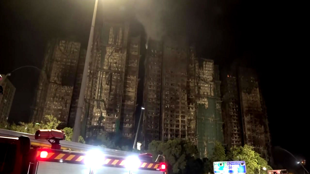 홍콩 당국은 27시간 만에 진화를 마쳤다고 밝혔지만, 창문 곳곳엔 여전히 불길이 일렁입니다.