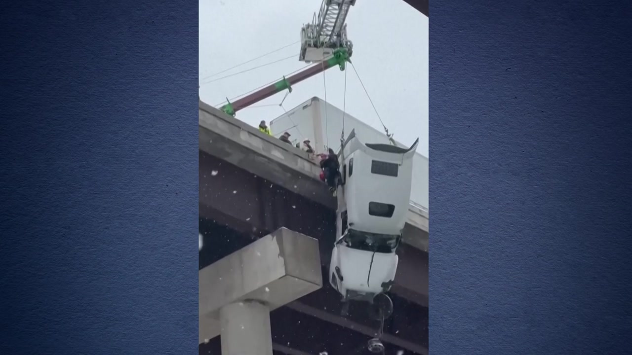 현지시각 2일 미국 웨스트버지니아에서 화물차가 눈길에서 중심을 잃고 미끄러지며 사고가 난 건데 운전자는 몇 시간 만에 극적으로 구조됐다고 하네요.