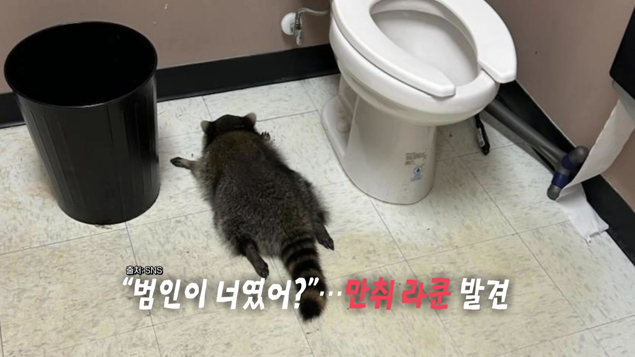 직원이 CCTV를 확인해보니, 이 라쿤, 새벽에 천장 타일을 뚫고 들어와 주류 선반을 뒤지는 모습이 찍혀 있었습니다.