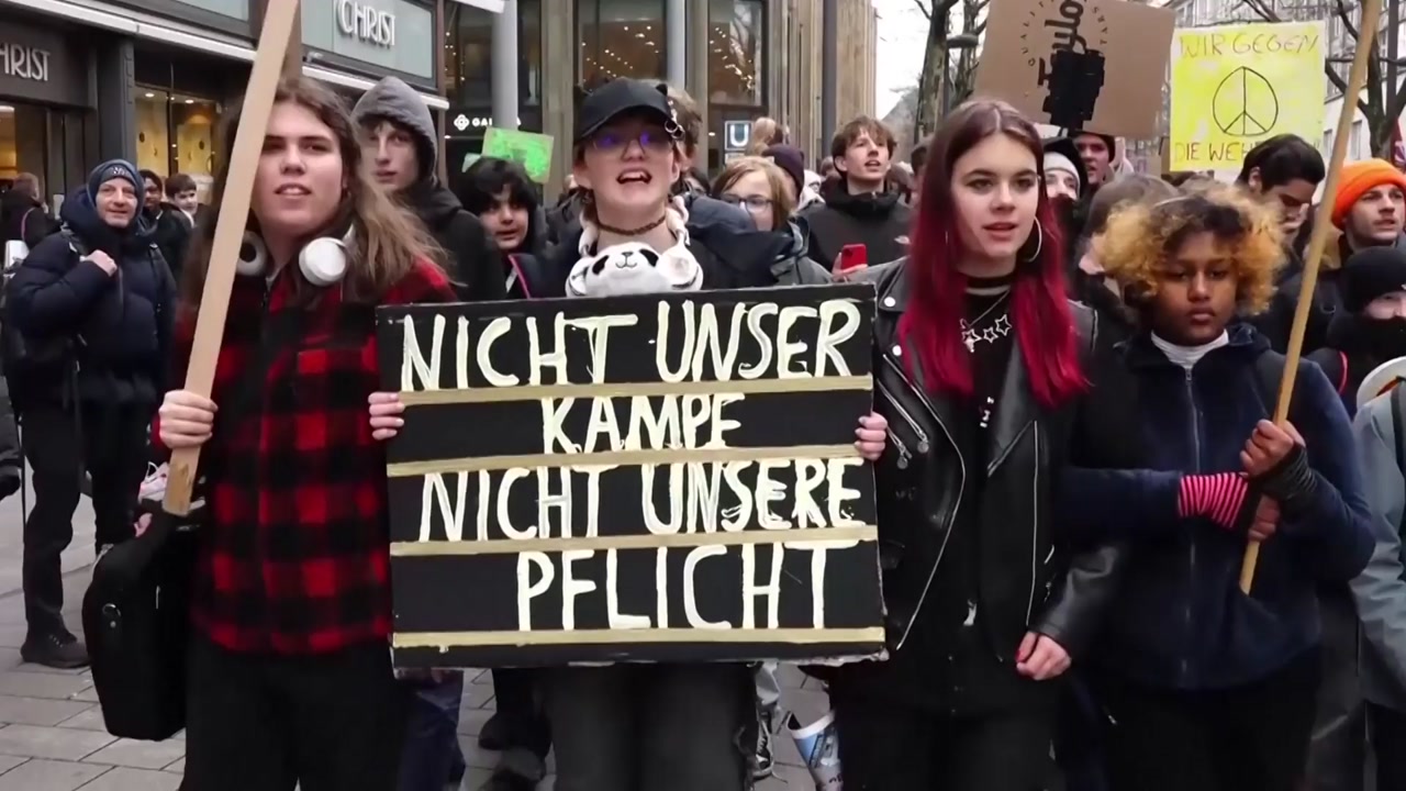 베를린 등 90개 이상의 도시에서 학생 수만 명이 수업을 거부하고 병역 반대 시위에 참가했습니다.