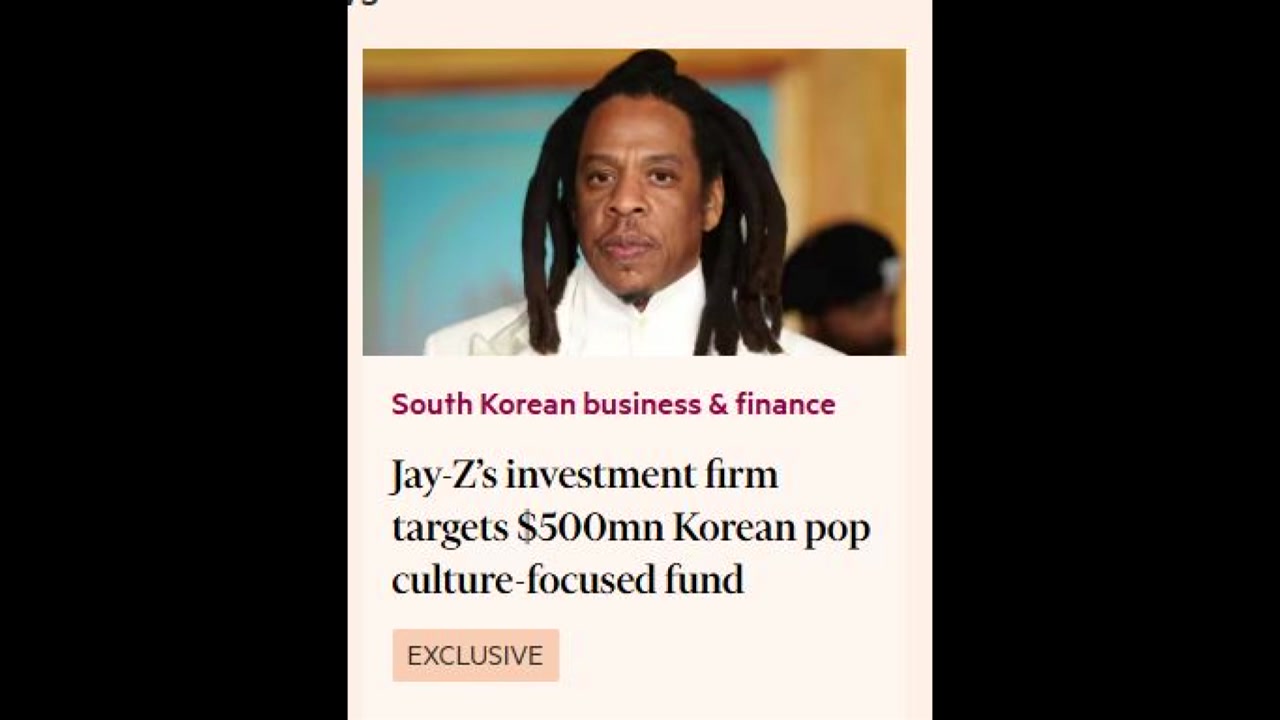 래퍼 제이지가 투자한 회사가 한국 'K-컬처' 기업에 투자하기 위해 5억 달러, 7,350억 원 규모 펀드 조성을 추진합니다.