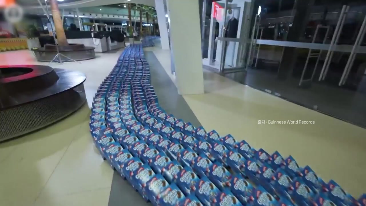 요르단에서 시리얼 상자 만6,500여 개로 도미노에 도전하며 세계 신기록을 경신한 건데요,