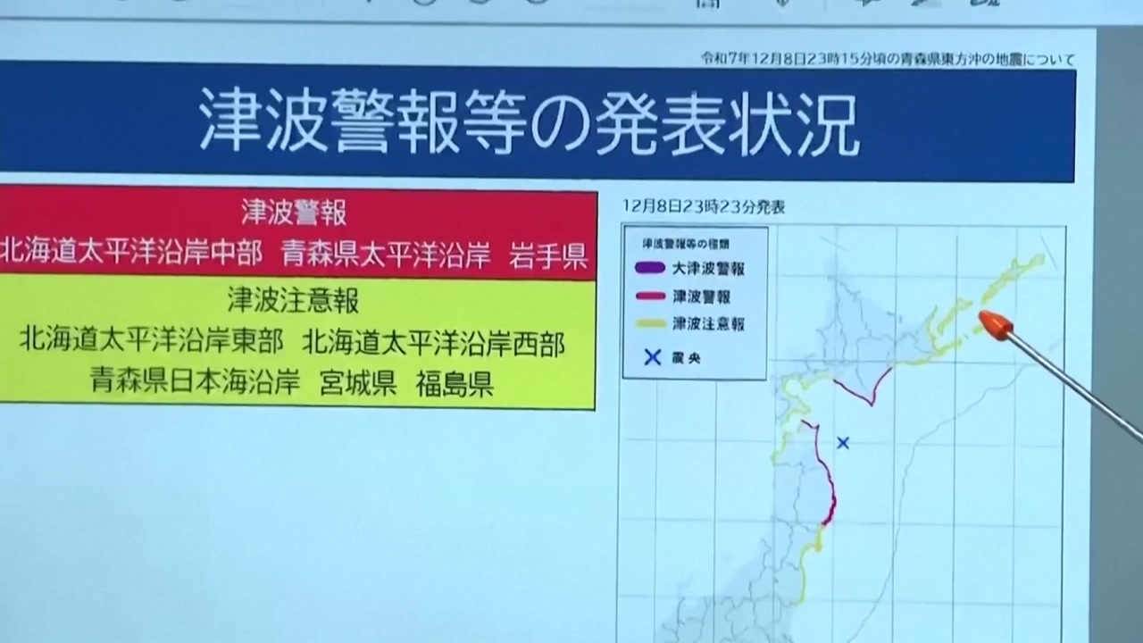 일본 기상청은 이번 지진과 관련해 '홋카이도·산리쿠 앞바다 후발 지진 주의정보'를 처음 발표했습니다.