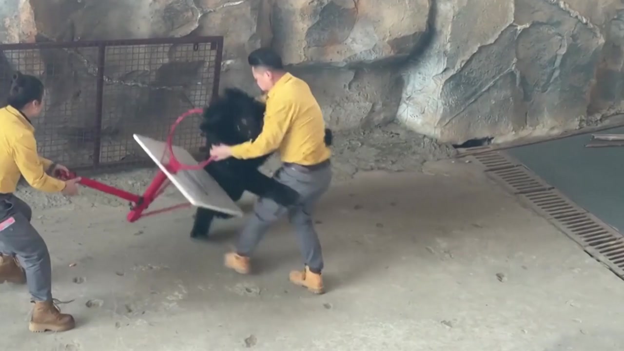 지난 6일 중국 항저우의 '사파리 파크'에서 동물 쇼 공연 도중 흑색 곰이 조련사를 공격했습니다.