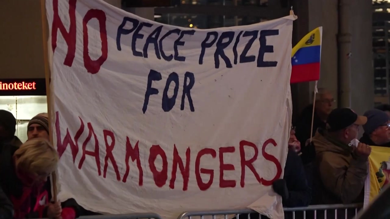 오슬로에서는 미국의 베네수엘라 군사 공격을 지지하는 마차도가 평화상을 받을 자격이 없다며 반대 시위가 열리기도 했습니다.