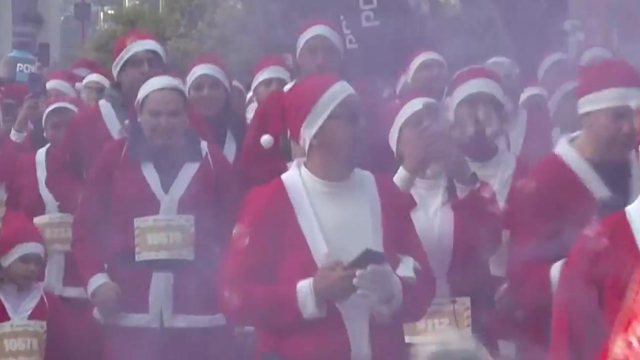 이 수많은 산타들, 어딘가를 향해 달리기 시작하는데요.