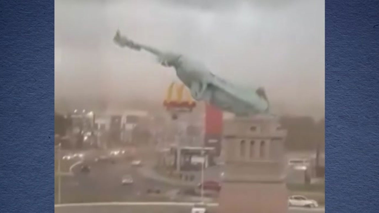 순간 최대 시속 90km의 바람에 20m가 훌쩍 넘는 조형물이 쓰러지는 장면은 그만큼 비현실적입니다.