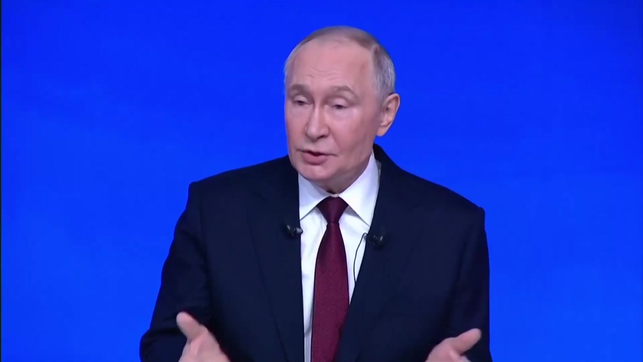 모스크바에서 연례 기자회견에 나선 블라디미르 푸틴 러시아 대통령.