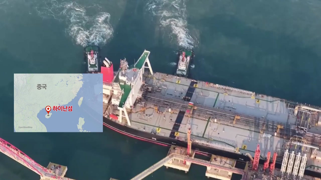 중국에서 처음 자유무역항으로 지정된 최남단 하이난섬에 입항한 첫 면세 통관 선박입니다.