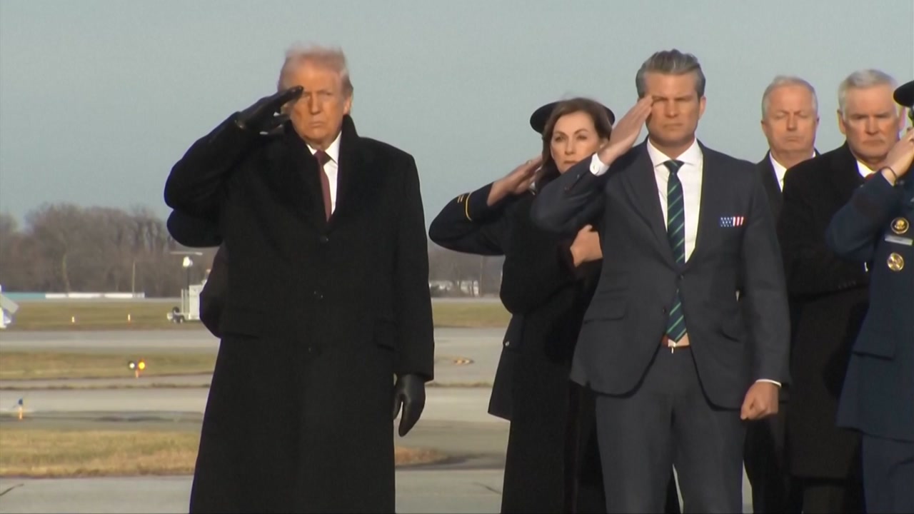 전사한 병사들의 운구식에 거수 경례로 애도한 트럼프 미 대통령은 정당한 보복을 강조했습니다.